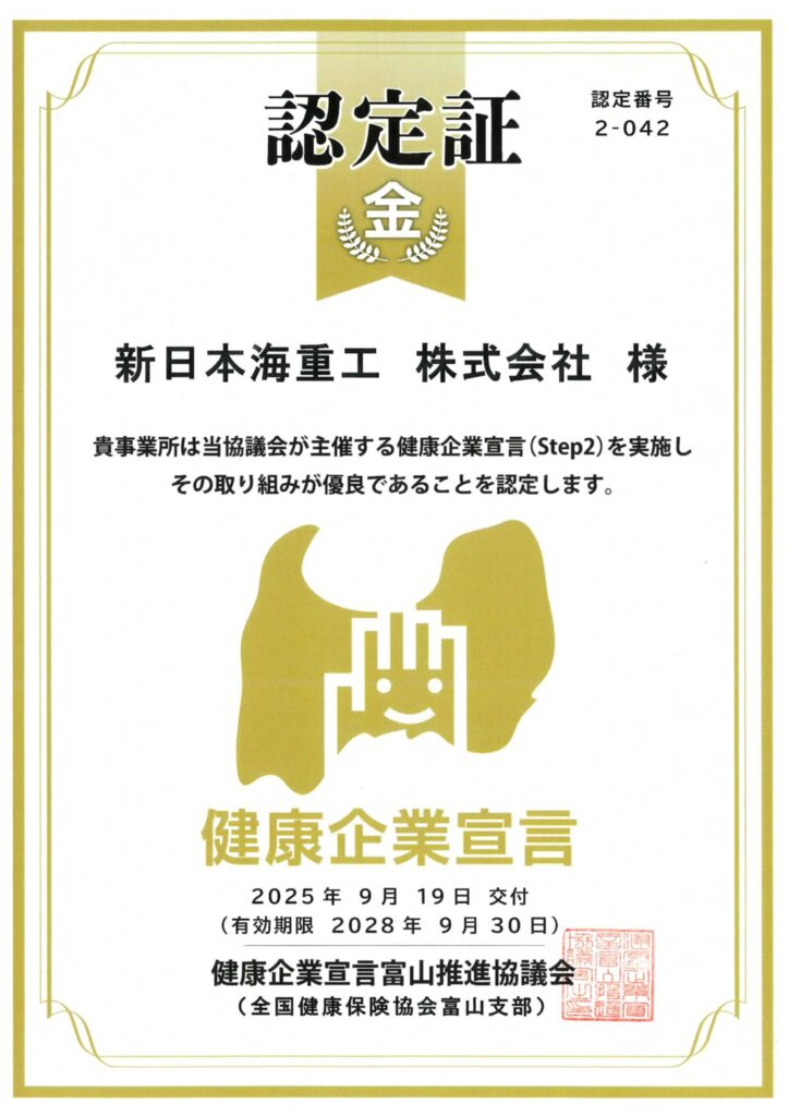 2025年9月19日に「健康企業宣言(step2)」の認定を継続更新しました。
